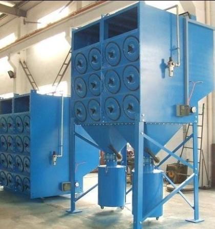 5、 單機除塵器清灰采用脈沖噴吹在線清灰方式。清灰過程由脈沖控制儀自動控制。除塵器內設置多個濾筒以增加其過濾面積,當某個(對)濾筒滿足清灰設定要求時,即啟動噴吹裝置進行清灰,其他濾筒正常工作,這樣既達到了清灰效果又不影響設備運行,使除塵器可連續運轉;組合式除塵器清灰采用分室離線脈沖自動循環清灰。每個除塵室內設置多個濾筒以增加其過濾面積,當某個除塵室內濾筒滿足清灰設定要求時,即啟動噴吹裝置進行清灰,其他除塵室正常工作,這樣既了清灰效果又可使除塵器可連續運轉;