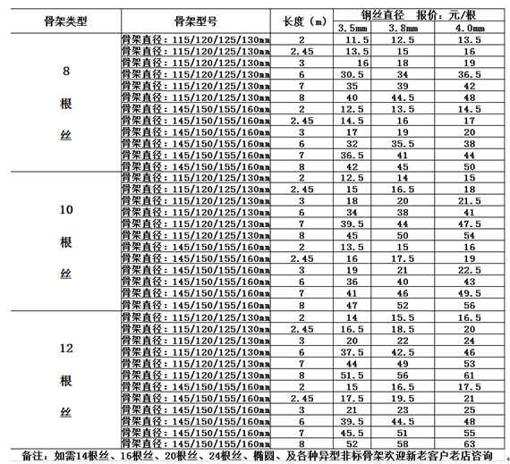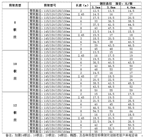 以下是噴塑除塵骨架和鍍鋅除塵骨架的價格表