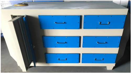 活性炭吸附設備分為兩種,一種是活性炭過濾棉。另外一種則是活性炭顆粒的過濾箱?;钚蕴窟^濾箱的種類又分為兩種。一種是直接成型的壓板箱型,另外一種則是焊接型的,如下圖。