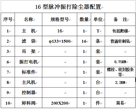 16袋單機(jī)除塵器的配置是怎樣的呢?小編為您簡單的介紹下16袋單機(jī)除塵器的常規(guī)配置:...
